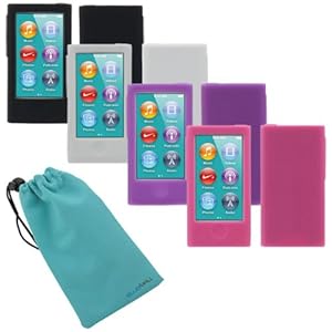 Amazon.com: Evecase Soft Silicone Skin Case Covers - Black + White + Purple + Hot Pink For Apple Ipod Nano 7 7g 7th Generation - 2012 Newest Model + blue Microfiber Sleeve Pouch Case: Mp3 Players & Accessories Overview